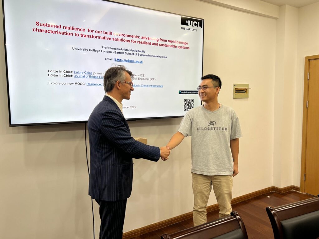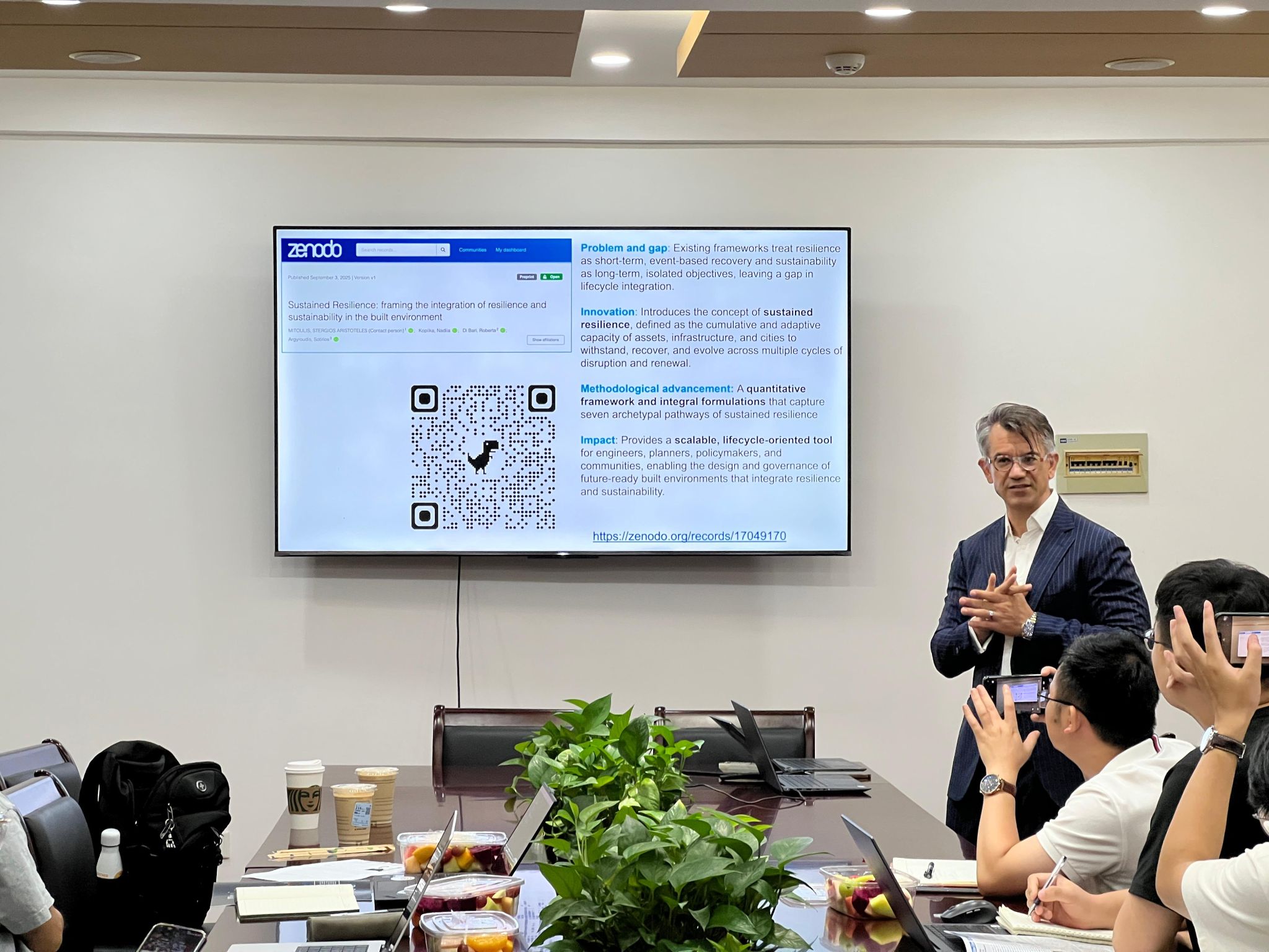During the visit, Professor Mitoulis met with Professor Xing Shi and Professor Ariel Peixian Li, along with their colleagues and students, to explore innovative approaches to transforming built environments through sustainability and resilience.