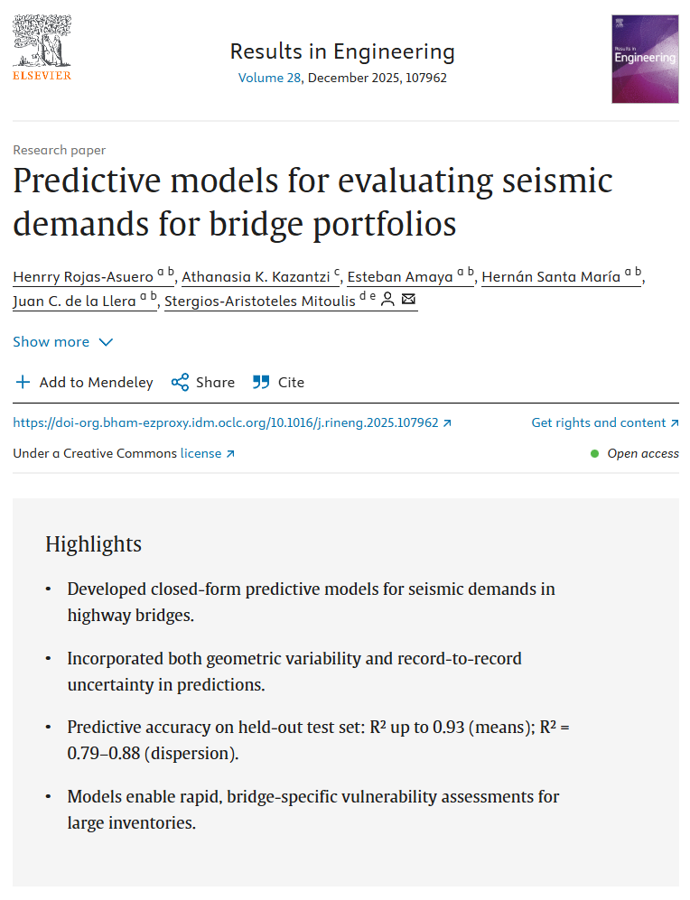 New publication in Results in Engineering (Elsevier, Q1, IF 7.9): Predictive models for evaluating seismic demands for bridge portfolios